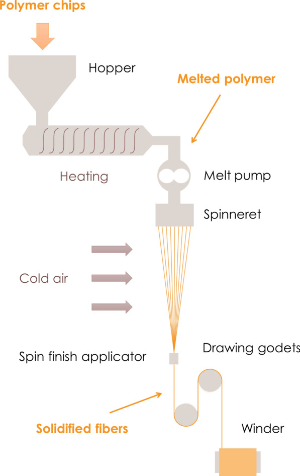 Below is the manufacturing process used to spin synthetic materials into fabric.